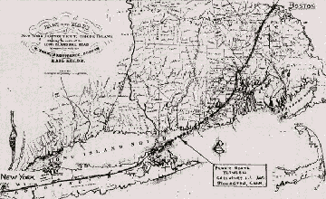 Original map showing Long Island Railroad as part of New York to Boston Rail System (circa 1844) [Larger map].