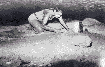 Bob Diamond on top of backfilled area in vicinity of tunnel entrance, 1980.