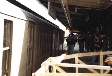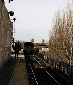 The Triplex train enters the station after its lunchtime break in Coney island yards. |